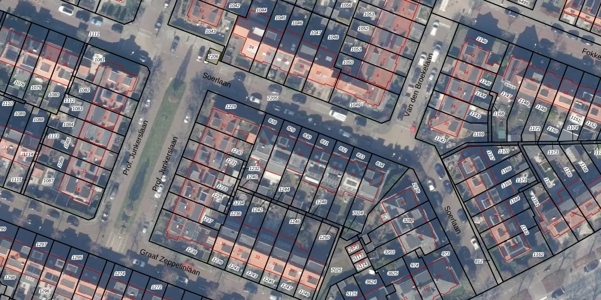 Gebruik de zoekbalk of klik op een perceel voor informatie over de adressen binnen dit perceel.