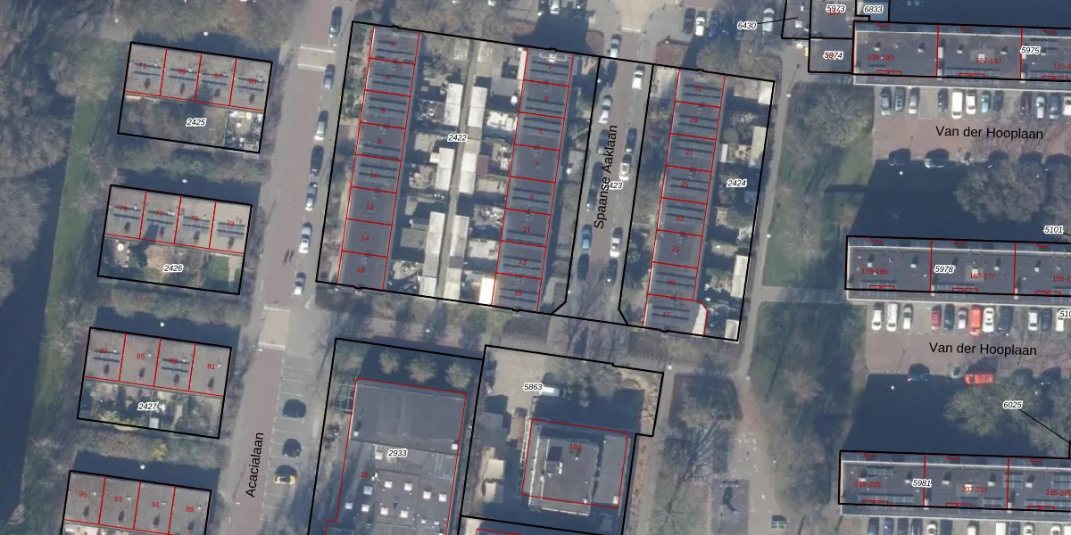 Het perceel waarop Spaanse Aaklaan 13 staat heeft een oppervlakte van 2284 m². Dit is een zeer groot perceel. De perceeloppervlakte wordt geregistreerd door het Kadaster. Gedetailleerde informatie over de maten van dit perceel kunt u vinden in het rapport Kadastrale kaart met maatvoering van Spaanse Aaklaan 13.
