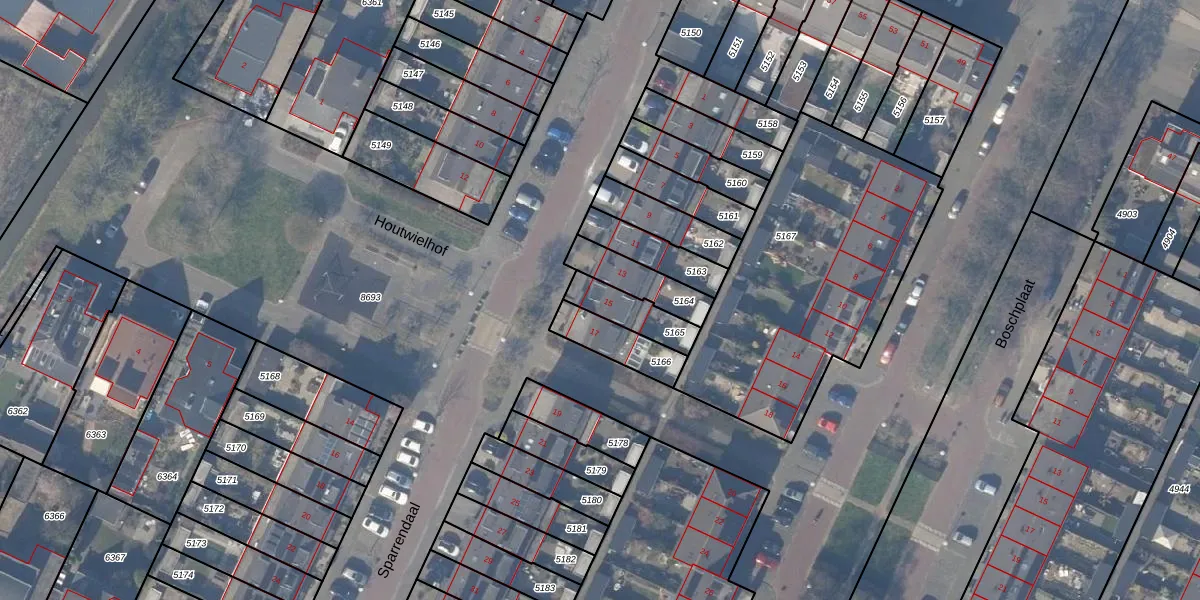 Gebruik de zoekbalk of klik op een perceel voor informatie over de adressen binnen dit perceel.