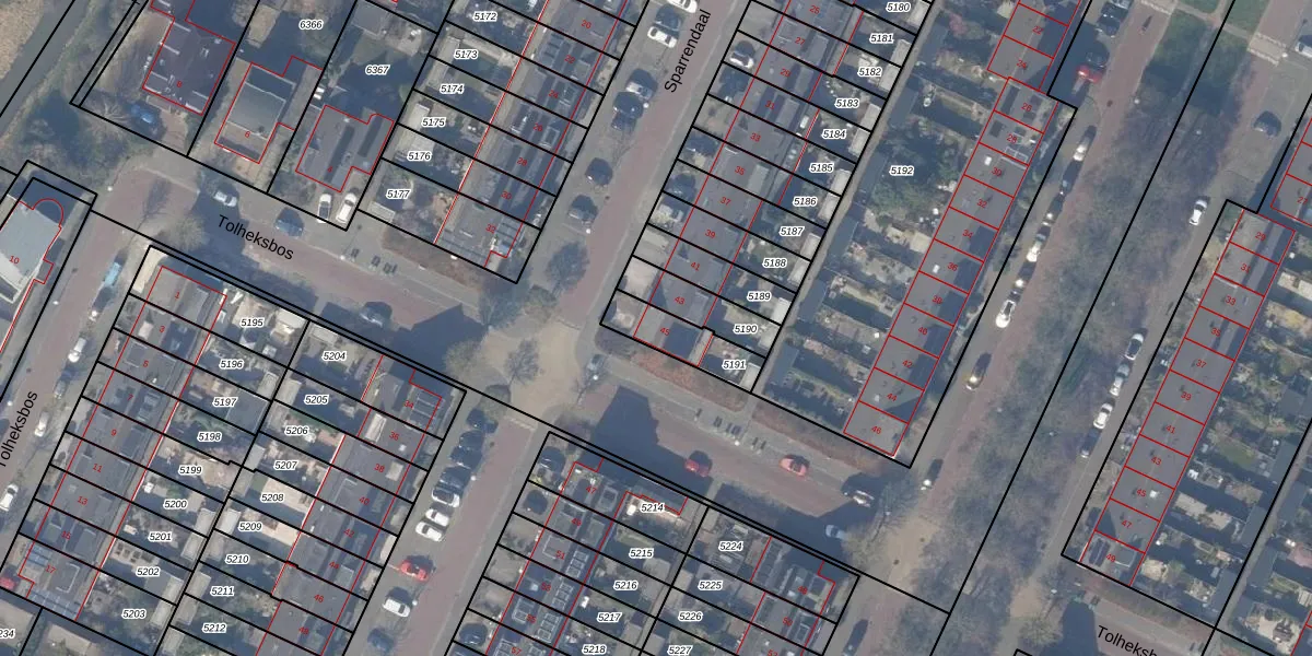 Gebruik de zoekbalk of klik op een perceel voor informatie over de adressen binnen dit perceel.