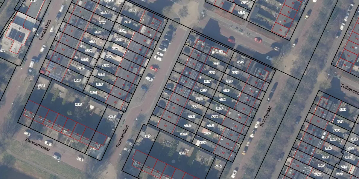 Sparrendaal 57 is gelegen op kadastraal perceel ASV00O5219. Deze kadastrale aanduiding is uniek en wordt gebruikt door het Kadaster om eigendomsrechten en andere zakelijke rechten vast te leggen. Het perceel maakt onderdeel uit van de kadastrale gemeente Amstelveen.