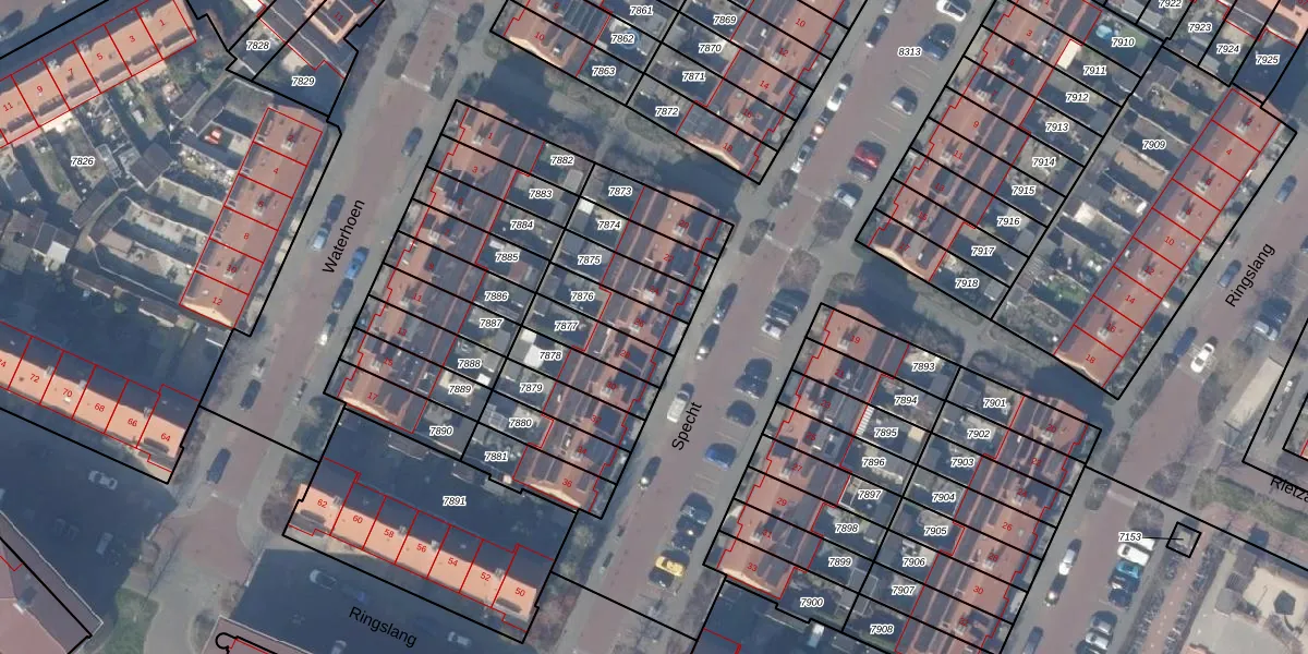 Gebruik de zoekbalk of klik op een perceel voor informatie over de adressen binnen dit perceel.