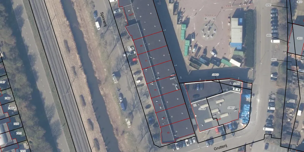 Het perceel waarop Spinnerij 73 staat heeft een oppervlakte van 5011 m². Dit is een zeer groot perceel. De perceeloppervlakte wordt geregistreerd door het Kadaster. Gedetailleerde informatie over de maten van dit perceel kunt u vinden in het rapport Kadastrale kaart met maatvoering van Spinnerij 73.