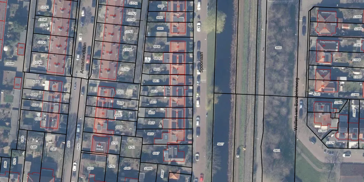 Spoorlaan 6 is gelegen op kadastraal perceel ASV00H6812. Deze kadastrale aanduiding is uniek en wordt gebruikt door het Kadaster om eigendomsrechten en andere zakelijke rechten vast te leggen. Het perceel maakt onderdeel uit van de kadastrale gemeente Amstelveen.