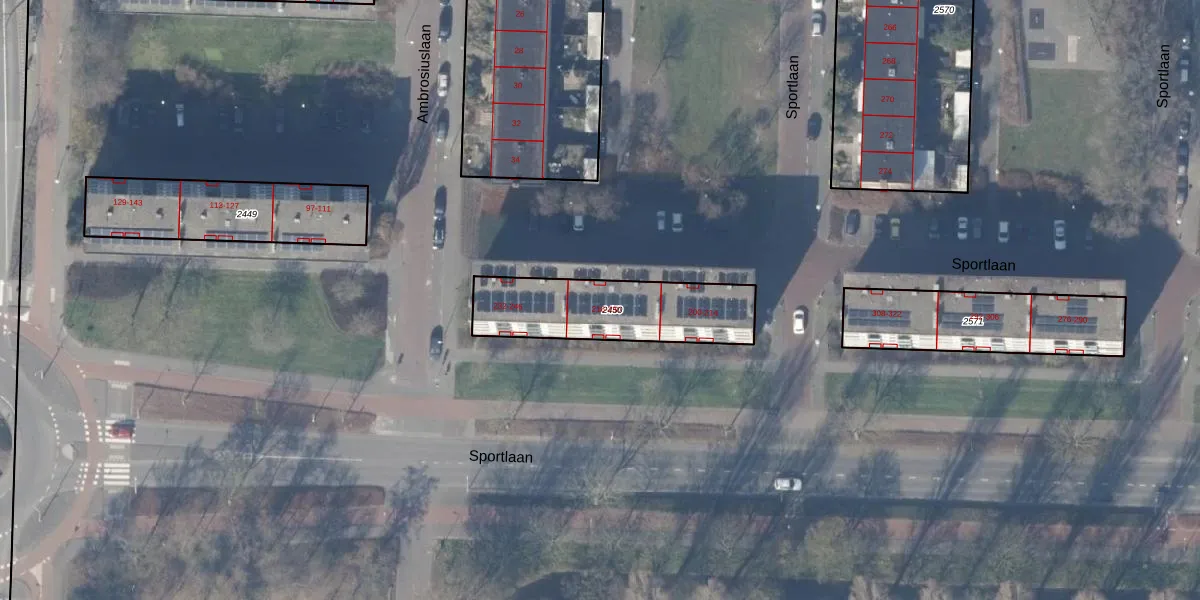 Sportlaan 226 is gelegen op kadastraal perceel ASV00M2450. Deze kadastrale aanduiding is uniek en wordt gebruikt door het Kadaster om eigendomsrechten en andere zakelijke rechten vast te leggen. Het perceel maakt onderdeel uit van de kadastrale gemeente Amstelveen.