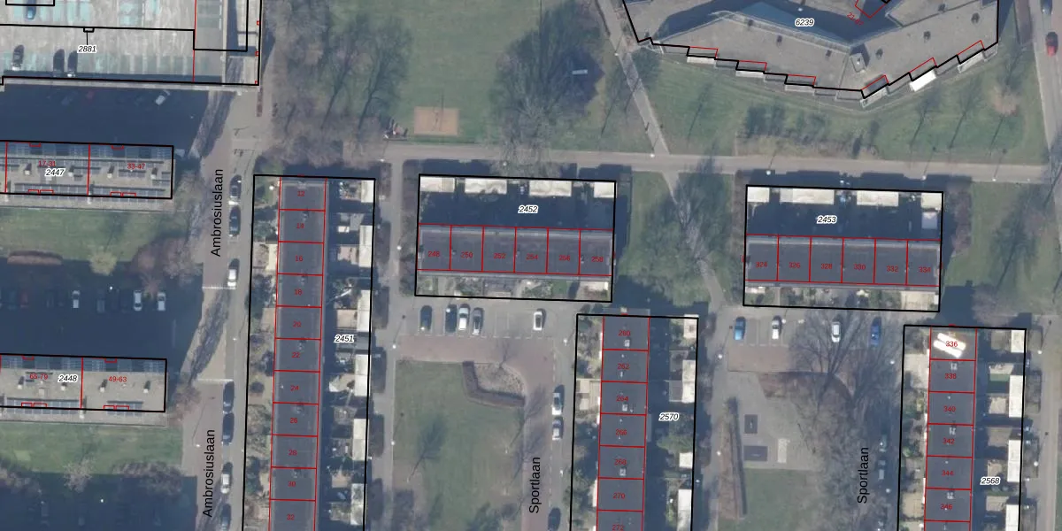 Sportlaan 254 is gelegen op kadastraal perceel ASV00M2452. Deze kadastrale aanduiding is uniek en wordt gebruikt door het Kadaster om eigendomsrechten en andere zakelijke rechten vast te leggen. Het perceel maakt onderdeel uit van de kadastrale gemeente Amstelveen.