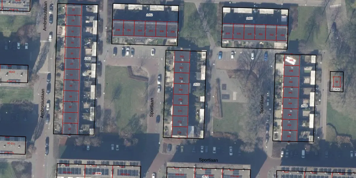 Sportlaan 266 is gelegen op kadastraal perceel ASV00M2570. Deze kadastrale aanduiding is uniek en wordt gebruikt door het Kadaster om eigendomsrechten en andere zakelijke rechten vast te leggen. Het perceel maakt onderdeel uit van de kadastrale gemeente Amstelveen.
