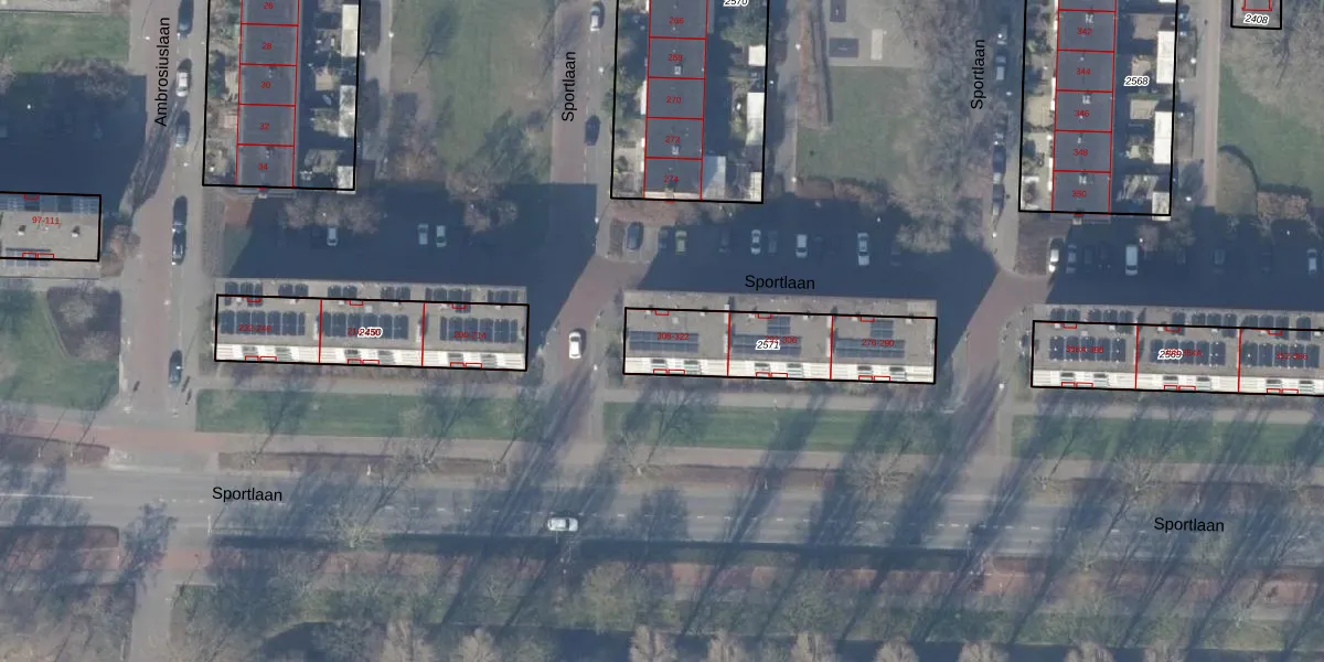 Sportlaan 318 is gelegen op kadastraal perceel ASV00M2571. Deze kadastrale aanduiding is uniek en wordt gebruikt door het Kadaster om eigendomsrechten en andere zakelijke rechten vast te leggen. Het perceel maakt onderdeel uit van de kadastrale gemeente Amstelveen.