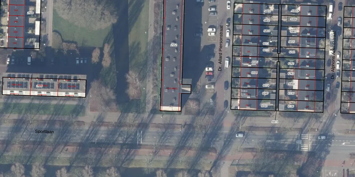 Het perceel waarop Sportlaan 400 staat heeft een oppervlakte van 845 m². Dit is een groot perceel. De perceeloppervlakte wordt geregistreerd door het Kadaster. Gedetailleerde informatie over de maten van dit perceel kunt u vinden in het rapport Kadastrale kaart met maatvoering van Sportlaan 400.