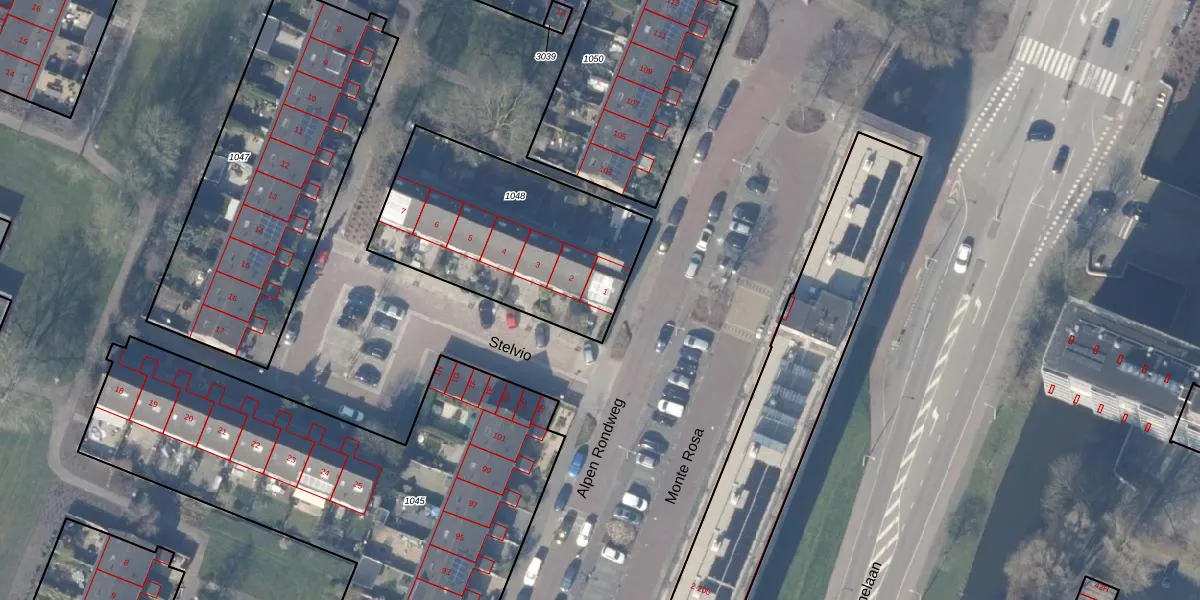 Stelvio 1 is gelegen op kadastraal perceel ASV00L1048. Deze kadastrale aanduiding is uniek en wordt gebruikt door het Kadaster om eigendomsrechten en andere zakelijke rechten vast te leggen. Het perceel maakt onderdeel uit van de kadastrale gemeente Amstelveen.