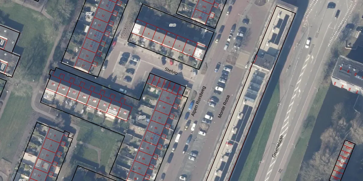 Stelvio 1-B is gelegen op kadastraal perceel ASV00L1045. Deze kadastrale aanduiding is uniek en wordt gebruikt door het Kadaster om eigendomsrechten en andere zakelijke rechten vast te leggen. Het perceel maakt onderdeel uit van de kadastrale gemeente Amstelveen.