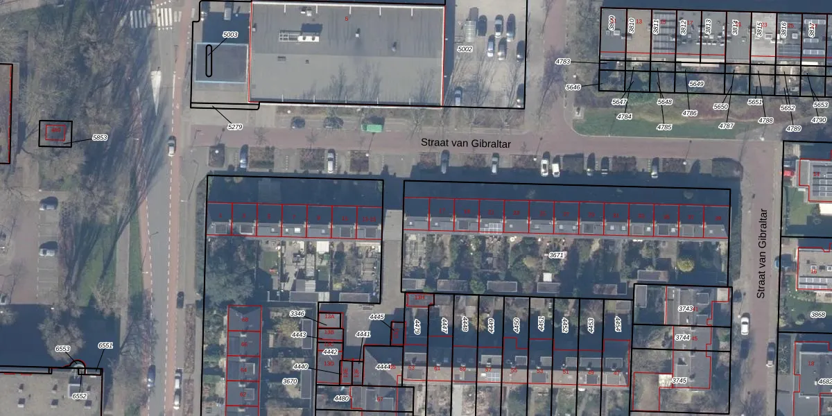 Het perceel waarop Straat van Gibraltar 15 staat heeft een oppervlakte van 2037 m². Dit is een zeer groot perceel. De perceeloppervlakte wordt geregistreerd door het Kadaster. Gedetailleerde informatie over de maten van dit perceel kunt u vinden in het rapport Kadastrale kaart met maatvoering van Straat van Gibraltar 15.