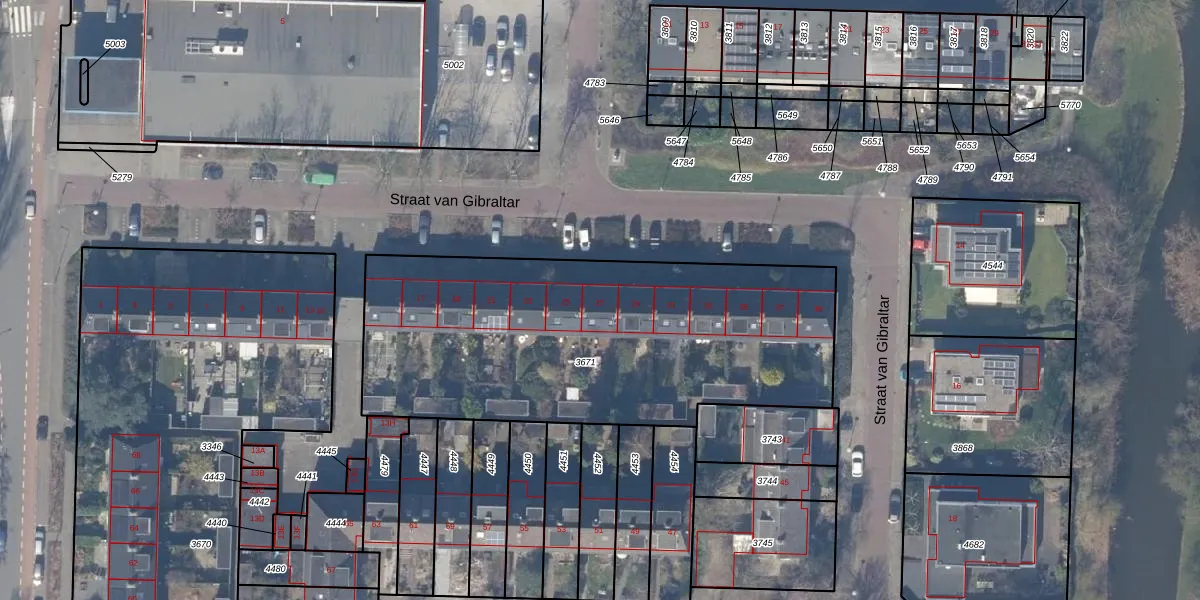 Het perceel waarop Straat van Gibraltar 27 staat heeft een oppervlakte van 2037 m². Dit is een zeer groot perceel. De perceeloppervlakte wordt geregistreerd door het Kadaster. Gedetailleerde informatie over de maten van dit perceel kunt u vinden in het rapport Kadastrale kaart met maatvoering van Straat van Gibraltar 27.