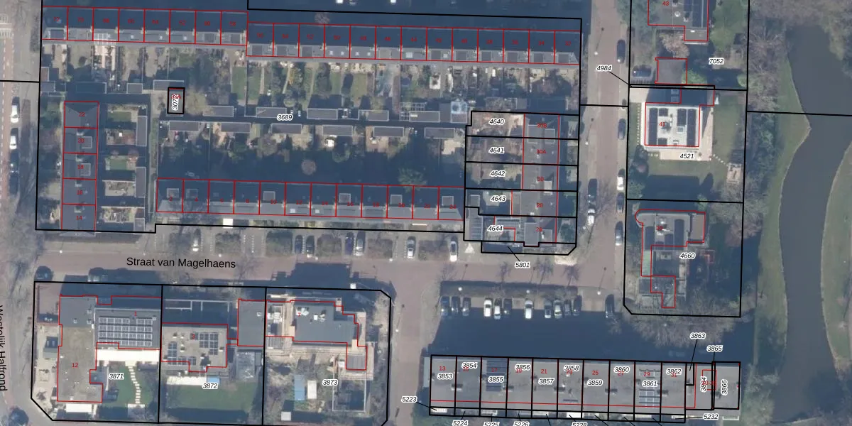 Het perceel waarop Straat van Magelhaens 22 staat heeft een oppervlakte van 5962 m². Dit is een zeer groot perceel. De perceeloppervlakte wordt geregistreerd door het Kadaster. Gedetailleerde informatie over de maten van dit perceel kunt u vinden in het rapport Kadastrale kaart met maatvoering van Straat van Magelhaens 22.