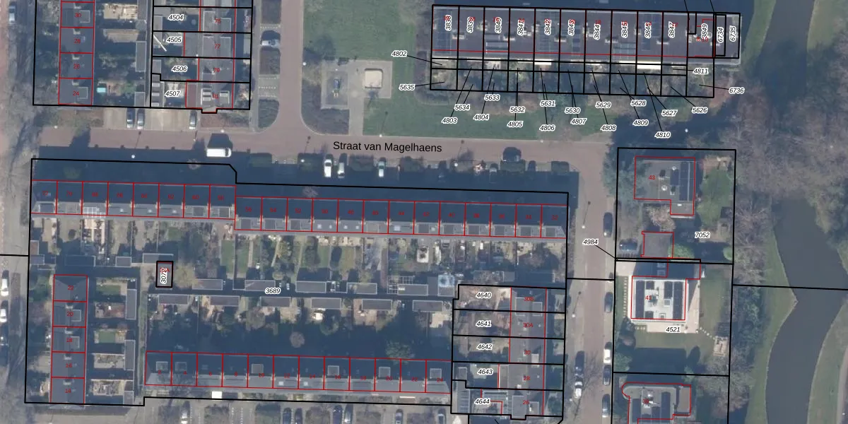 Het perceel waarop Straat van Magelhaens 42 staat heeft een oppervlakte van 5962 m². Dit is een zeer groot perceel. De perceeloppervlakte wordt geregistreerd door het Kadaster. Gedetailleerde informatie over de maten van dit perceel kunt u vinden in het rapport Kadastrale kaart met maatvoering van Straat van Magelhaens 42.