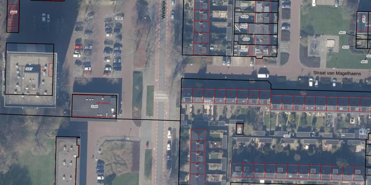 Het perceel waarop Straat van Magelhaens 72 staat heeft een oppervlakte van 5962 m². Dit is een zeer groot perceel. De perceeloppervlakte wordt geregistreerd door het Kadaster. Gedetailleerde informatie over de maten van dit perceel kunt u vinden in het rapport Kadastrale kaart met maatvoering van Straat van Magelhaens 72.