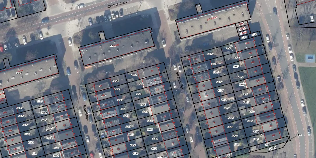 Gebruik de zoekbalk of klik op een perceel voor informatie over de adressen binnen dit perceel.