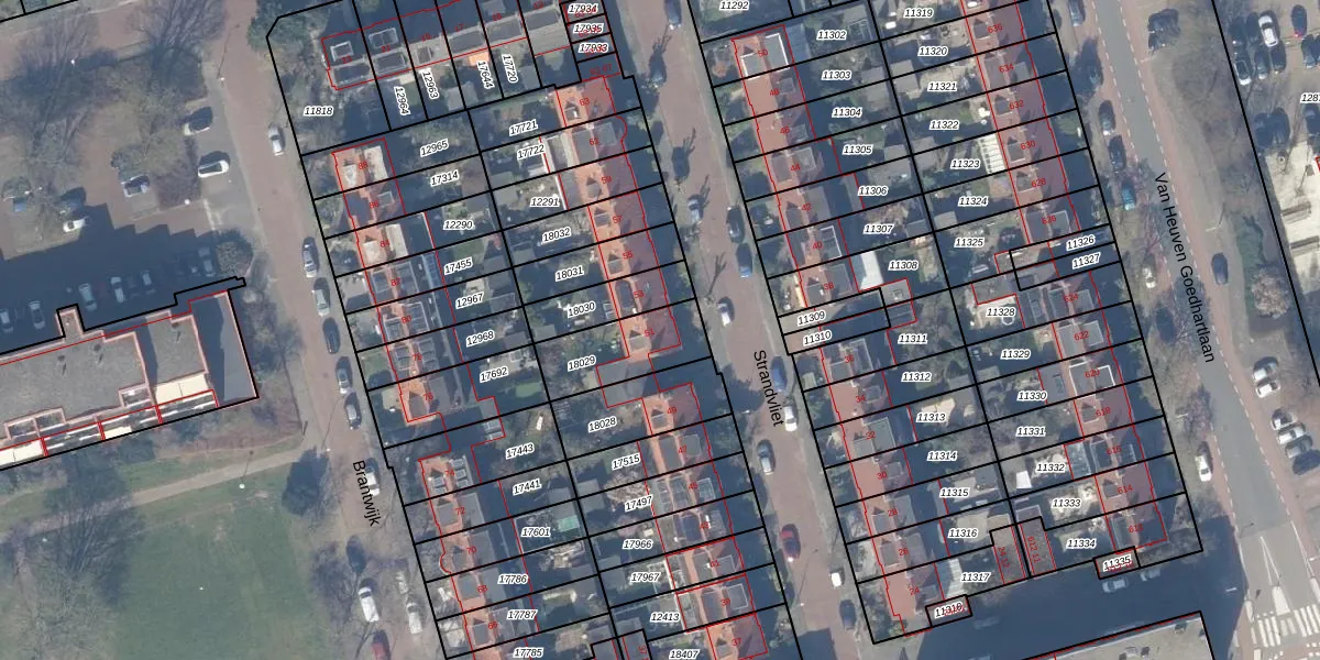 Gebruik de zoekbalk of klik op een perceel voor informatie over de adressen binnen dit perceel.