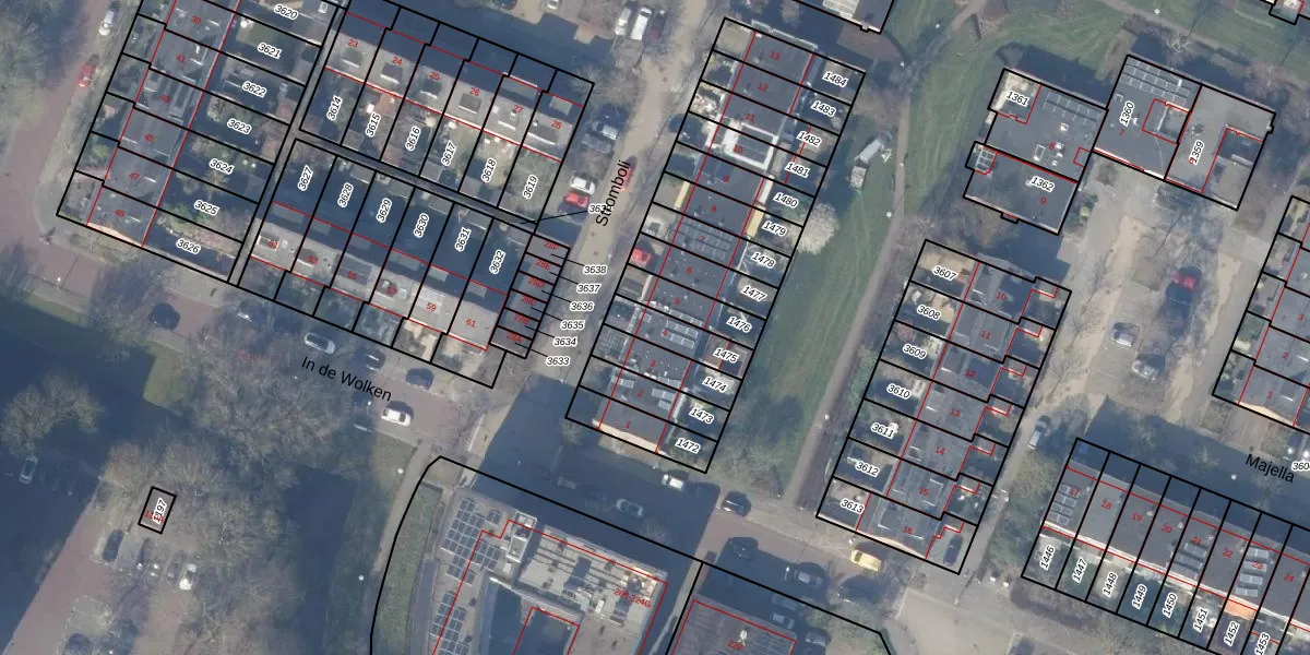 Gebruik de zoekbalk of klik op een perceel voor informatie over de adressen binnen dit perceel.