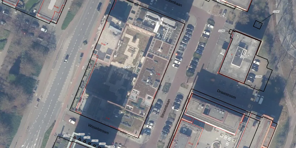 Het perceel waarop Stroombaan 37 staat heeft een oppervlakte van 4180 m². Dit is een zeer groot perceel. De perceeloppervlakte wordt geregistreerd door het Kadaster. Gedetailleerde informatie over de maten van dit perceel kunt u vinden in het rapport Kadastrale kaart met maatvoering van Stroombaan 37.