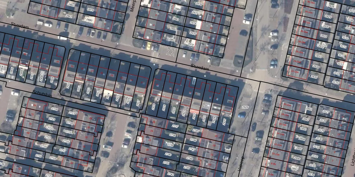 Gebruik de zoekbalk of klik op een perceel voor informatie over de adressen binnen dit perceel.