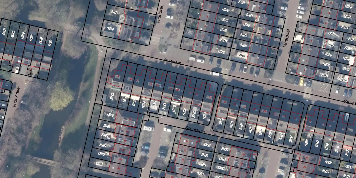 Gebruik de zoekbalk of klik op een perceel voor informatie over de adressen binnen dit perceel.