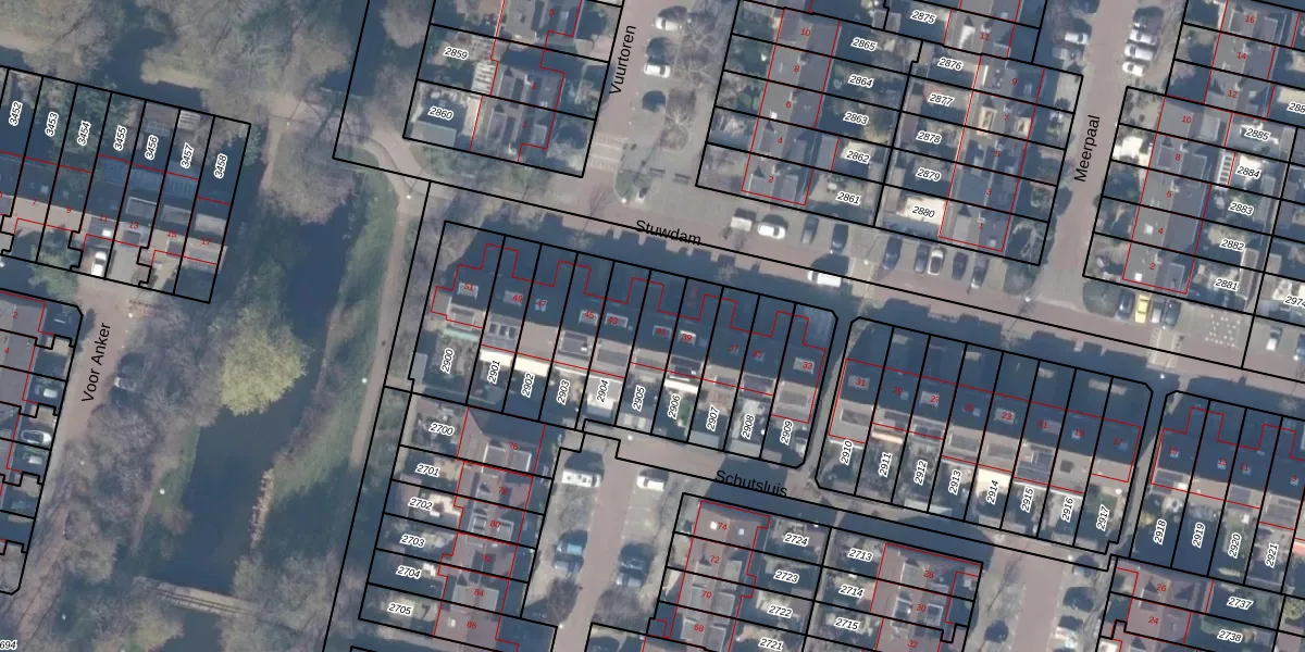 Gebruik de zoekbalk of klik op een perceel voor informatie over de adressen binnen dit perceel.