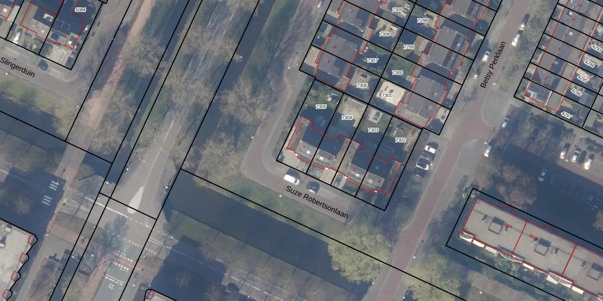 Suze Robertsonlaan 4 is gelegen op kadastraal perceel ASV00O7305. Deze kadastrale aanduiding is uniek en wordt gebruikt door het Kadaster om eigendomsrechten en andere zakelijke rechten vast te leggen. Het perceel maakt onderdeel uit van de kadastrale gemeente Amstelveen.