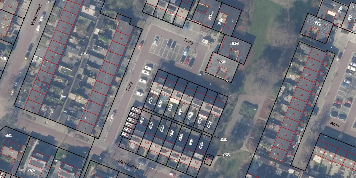 Het perceel waarop Taag 24 staat heeft een oppervlakte van 139 m². Dit is een middelgroot perceel. De perceeloppervlakte wordt geregistreerd door het Kadaster. Gedetailleerde informatie over de maten van dit perceel kunt u vinden in het rapport Kadastrale kaart met maatvoering van Taag 24.
