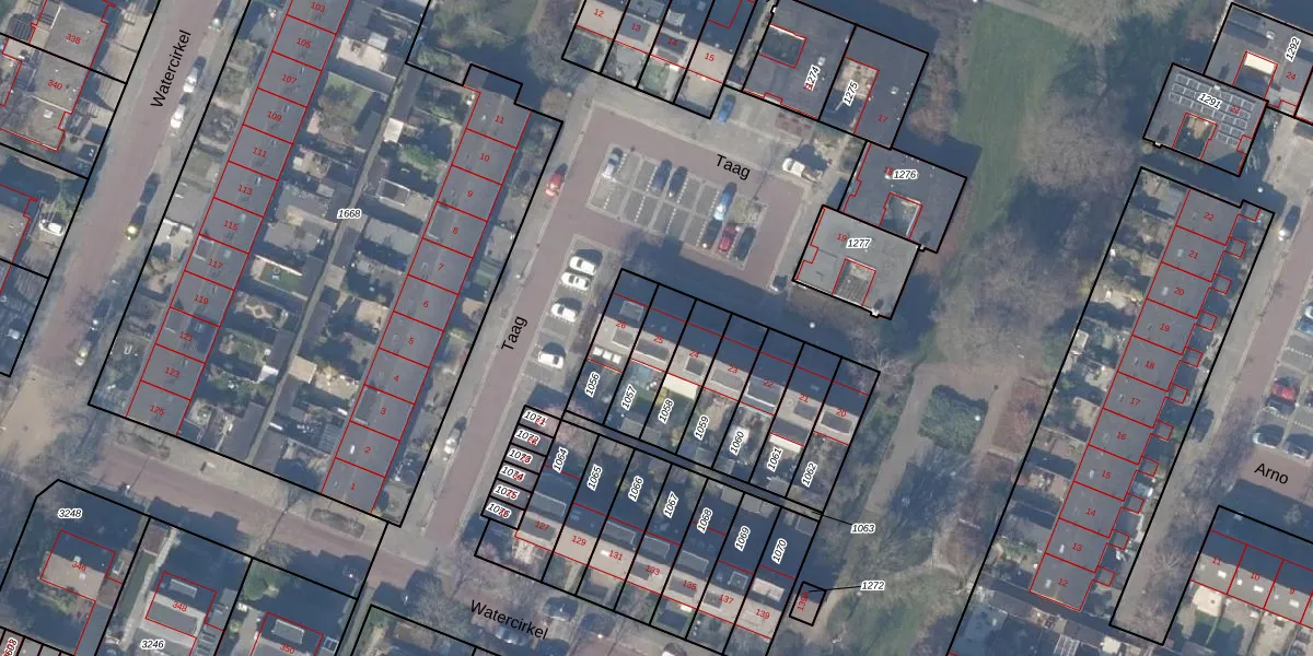 Het perceel waarop Taag 25 staat heeft een oppervlakte van 139 m². Dit is een middelgroot perceel. De perceeloppervlakte wordt geregistreerd door het Kadaster. Gedetailleerde informatie over de maten van dit perceel kunt u vinden in het rapport Kadastrale kaart met maatvoering van Taag 25.