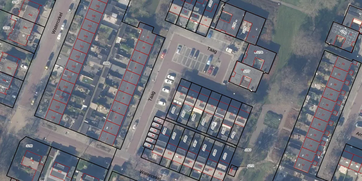 Het perceel waarop Taag 26 staat heeft een oppervlakte van 143 m². Dit is een middelgroot perceel. De perceeloppervlakte wordt geregistreerd door het Kadaster. Gedetailleerde informatie over de maten van dit perceel kunt u vinden in het rapport Kadastrale kaart met maatvoering van Taag 26.
