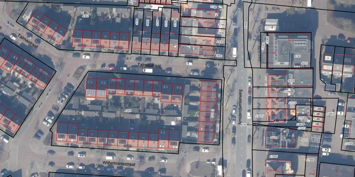 Talmastraat 1 is gelegen op kadastraal perceel ASV00G4364. Deze kadastrale aanduiding is uniek en wordt gebruikt door het Kadaster om eigendomsrechten en andere zakelijke rechten vast te leggen. Het perceel maakt onderdeel uit van de kadastrale gemeente Amstelveen.