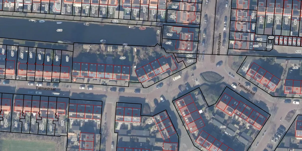 Talmastraat 38 is gelegen op kadastraal perceel ASV00G4528. Deze kadastrale aanduiding is uniek en wordt gebruikt door het Kadaster om eigendomsrechten en andere zakelijke rechten vast te leggen. Het perceel maakt onderdeel uit van de kadastrale gemeente Amstelveen.