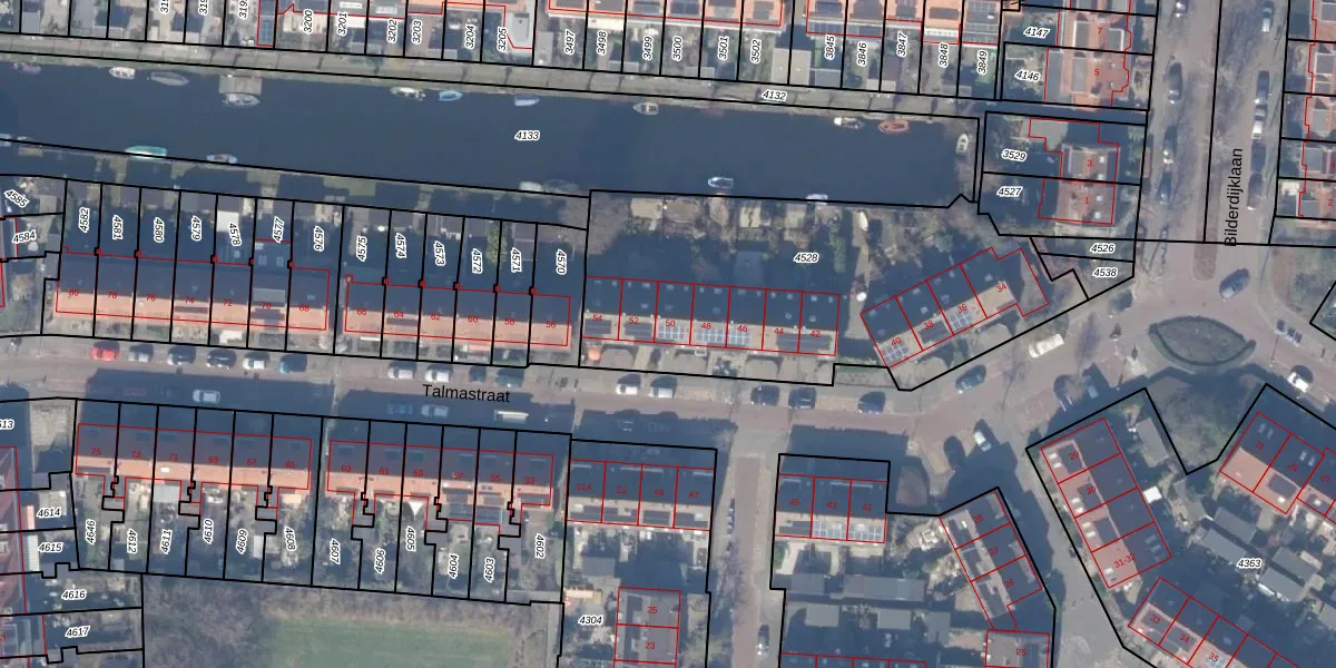 Talmastraat 50 is gelegen op kadastraal perceel ASV00G4528. Deze kadastrale aanduiding is uniek en wordt gebruikt door het Kadaster om eigendomsrechten en andere zakelijke rechten vast te leggen. Het perceel maakt onderdeel uit van de kadastrale gemeente Amstelveen.