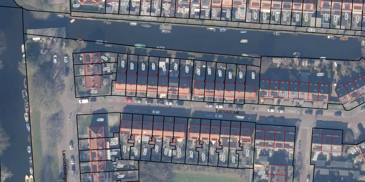 Talmastraat 68 is gelegen op kadastraal perceel ASV00G4576. Deze kadastrale aanduiding is uniek en wordt gebruikt door het Kadaster om eigendomsrechten en andere zakelijke rechten vast te leggen. Het perceel maakt onderdeel uit van de kadastrale gemeente Amstelveen.