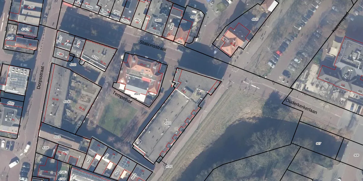 Het perceel waarop Tempelhof 21 staat heeft een oppervlakte van 1017 m². Dit is een zeer groot perceel. De perceeloppervlakte wordt geregistreerd door het Kadaster. Gedetailleerde informatie over de maten van dit perceel kunt u vinden in het rapport Kadastrale kaart met maatvoering van Tempelhof 21.