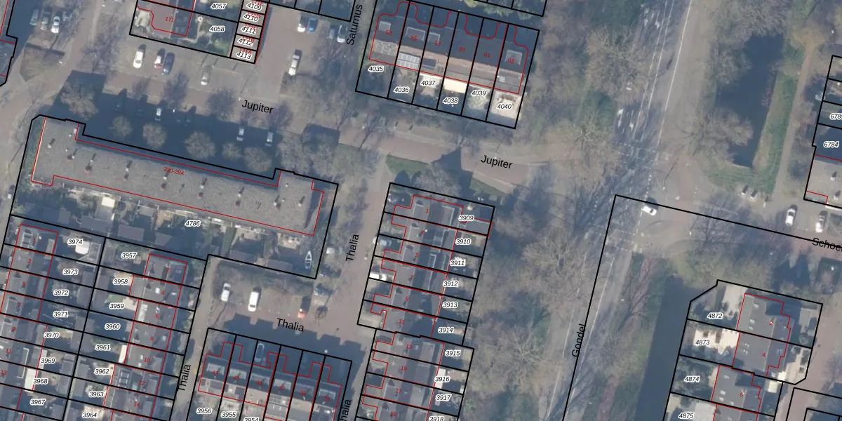 Het perceel waarop Thalia 1 staat heeft een oppervlakte van 180 m². Dit is een middelgroot perceel. De perceeloppervlakte wordt geregistreerd door het Kadaster. Gedetailleerde informatie over de maten van dit perceel kunt u vinden in het rapport Kadastrale kaart met maatvoering van Thalia 1.