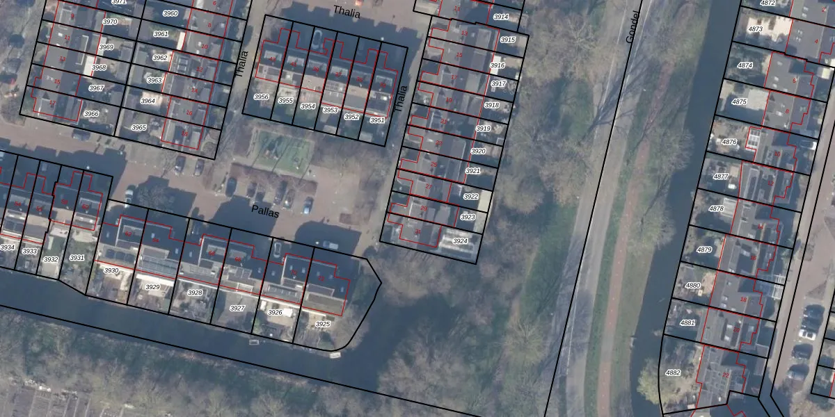 Het perceel waarop Thalia 29 staat heeft een oppervlakte van 128 m². Dit is een middelgroot perceel. De perceeloppervlakte wordt geregistreerd door het Kadaster. Gedetailleerde informatie over de maten van dit perceel kunt u vinden in het rapport Kadastrale kaart met maatvoering van Thalia 29.