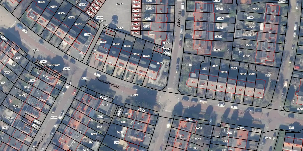 Thorbeckelaan 108 is gelegen op kadastraal perceel ASV00H11700. Deze kadastrale aanduiding is uniek en wordt gebruikt door het Kadaster om eigendomsrechten en andere zakelijke rechten vast te leggen. Het perceel maakt onderdeel uit van de kadastrale gemeente Amstelveen.
