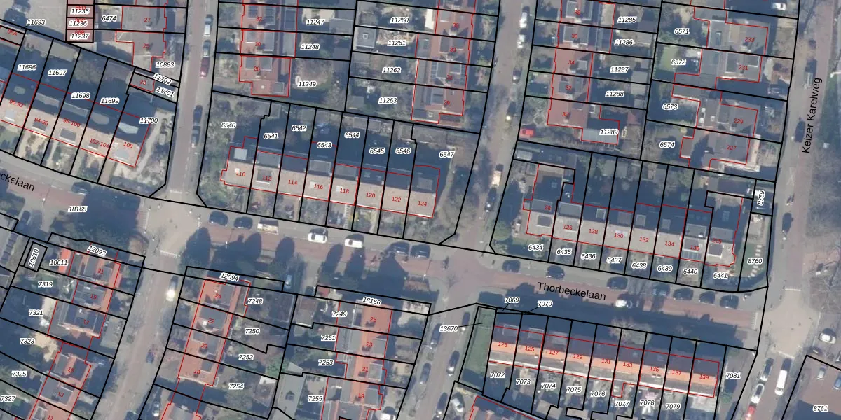 Gebruik de zoekbalk of klik op een perceel voor informatie over de adressen binnen dit perceel.