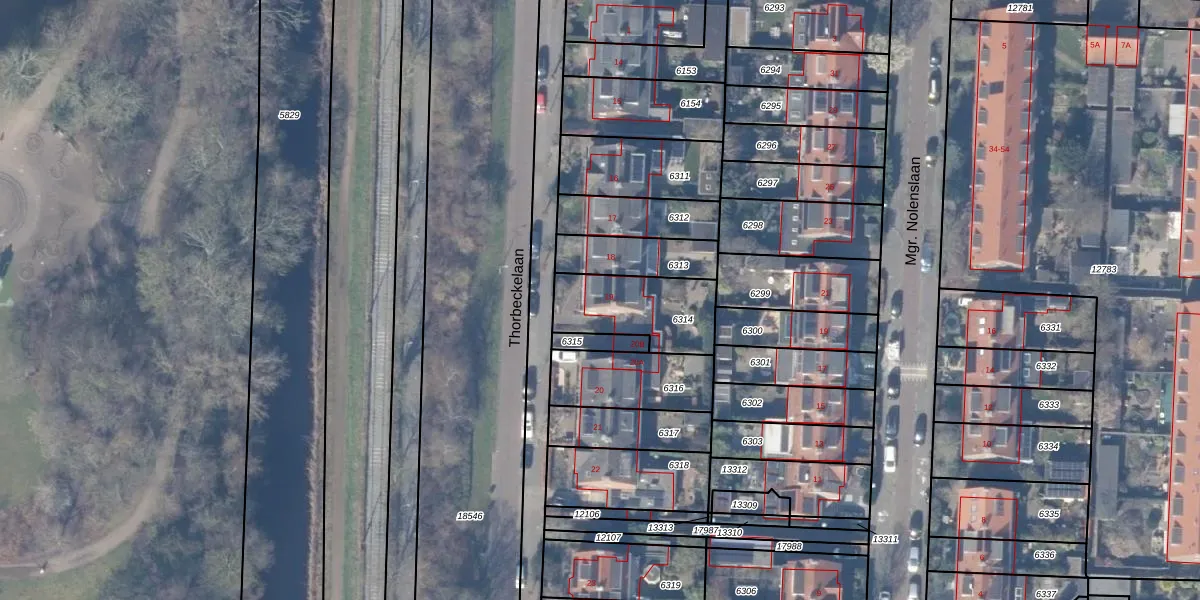 Het perceel waarop Thorbeckelaan 19 staat heeft een oppervlakte van 295 m². Dit is een middelgroot perceel. De perceeloppervlakte wordt geregistreerd door het Kadaster. Gedetailleerde informatie over de maten van dit perceel kunt u vinden in het rapport Kadastrale kaart met maatvoering van Thorbeckelaan 19.