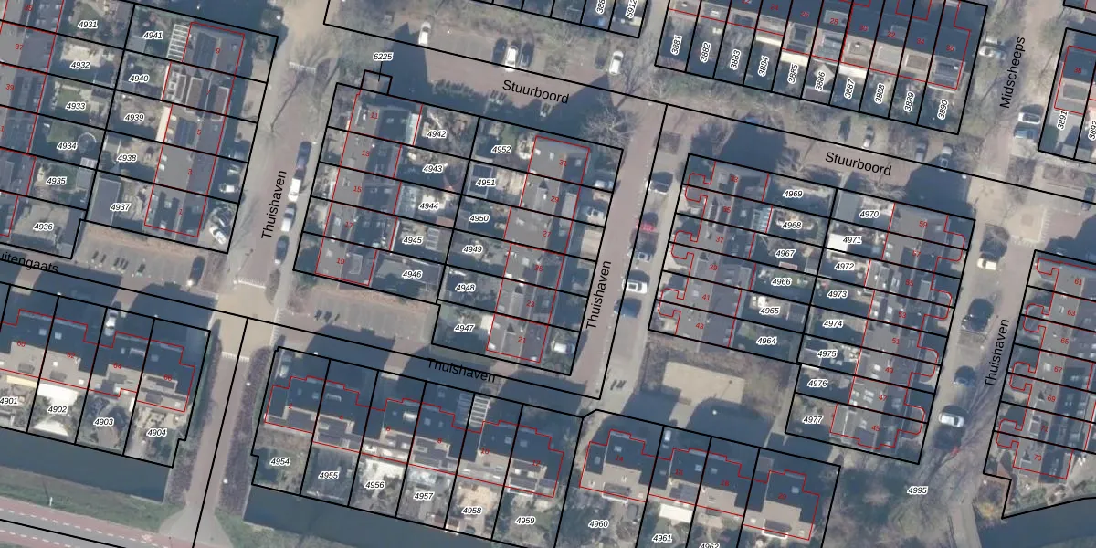 Gebruik de zoekbalk of klik op een perceel voor informatie over de adressen binnen dit perceel.