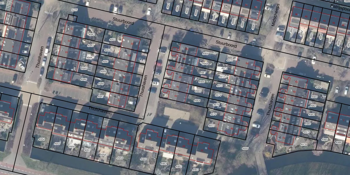 Thuishaven 41 is gelegen op kadastraal perceel ASV00M4965. Deze kadastrale aanduiding is uniek en wordt gebruikt door het Kadaster om eigendomsrechten en andere zakelijke rechten vast te leggen. Het perceel maakt onderdeel uit van de kadastrale gemeente Amstelveen.