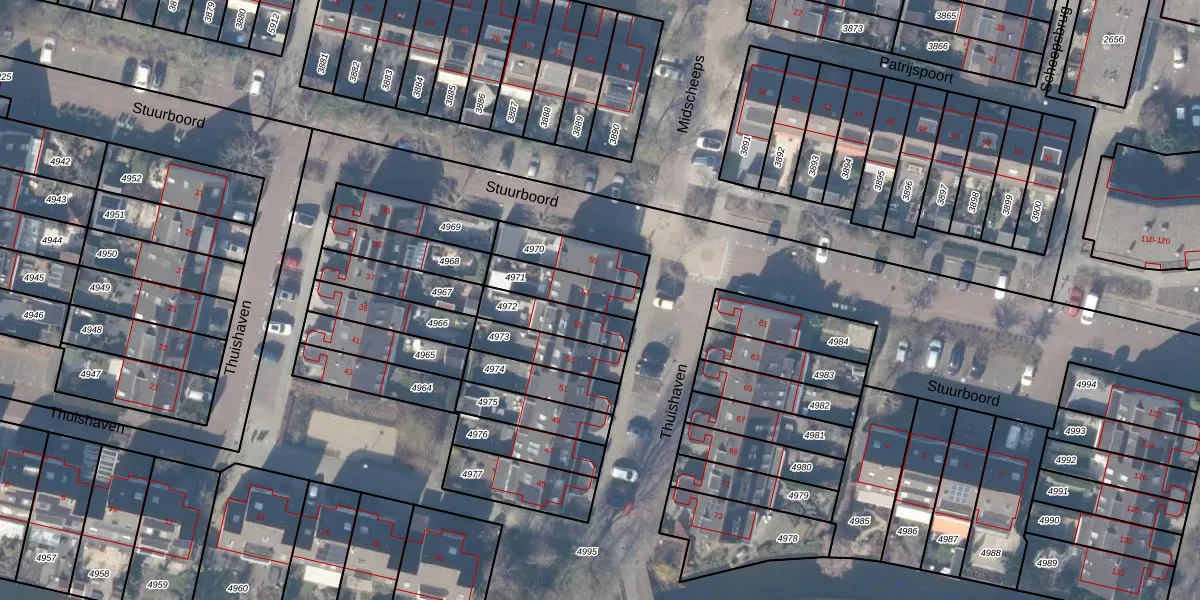 Thuishaven 57 is gelegen op kadastraal perceel ASV00M4971. Deze kadastrale aanduiding is uniek en wordt gebruikt door het Kadaster om eigendomsrechten en andere zakelijke rechten vast te leggen. Het perceel maakt onderdeel uit van de kadastrale gemeente Amstelveen.