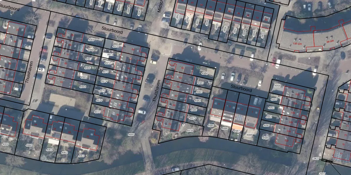 Thuishaven 65 is gelegen op kadastraal perceel ASV00M4982. Deze kadastrale aanduiding is uniek en wordt gebruikt door het Kadaster om eigendomsrechten en andere zakelijke rechten vast te leggen. Het perceel maakt onderdeel uit van de kadastrale gemeente Amstelveen.