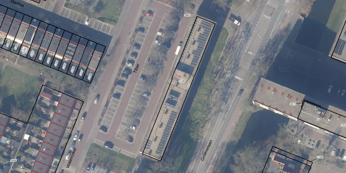 Het perceel waarop Tiber 12-A staat heeft een oppervlakte van 970 m². Dit is een groot perceel. De perceeloppervlakte wordt geregistreerd door het Kadaster. Gedetailleerde informatie over de maten van dit perceel kunt u vinden in het rapport Kadastrale kaart met maatvoering van Tiber 12-A.