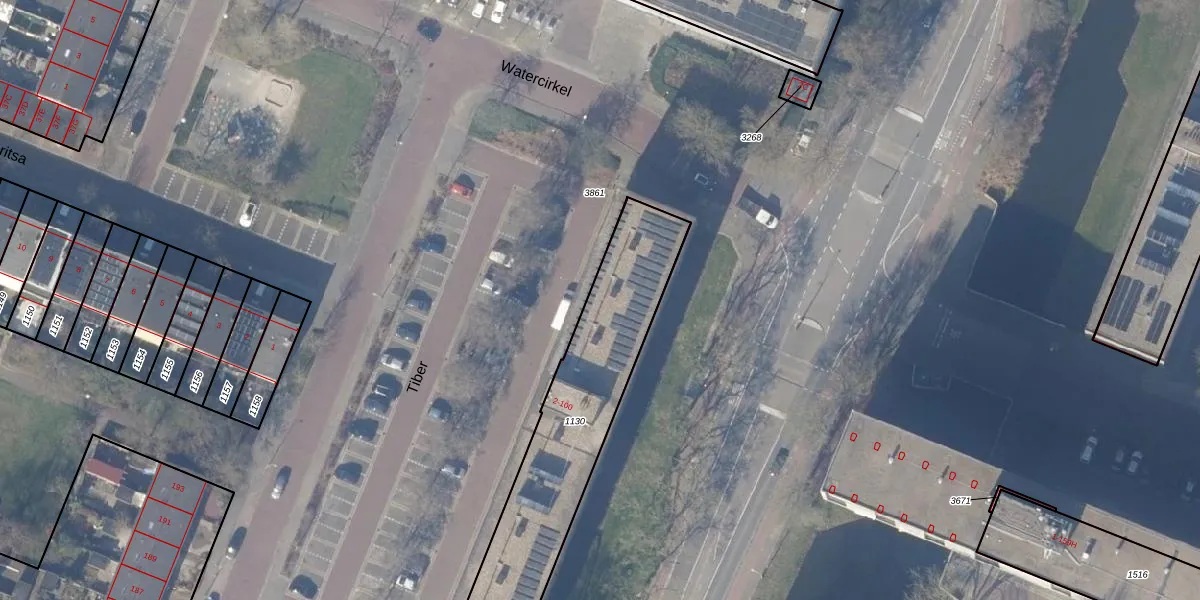 Het perceel waarop Tiber 4-B staat heeft een oppervlakte van 970 m². Dit is een groot perceel. De perceeloppervlakte wordt geregistreerd door het Kadaster. Gedetailleerde informatie over de maten van dit perceel kunt u vinden in het rapport Kadastrale kaart met maatvoering van Tiber 4-B.