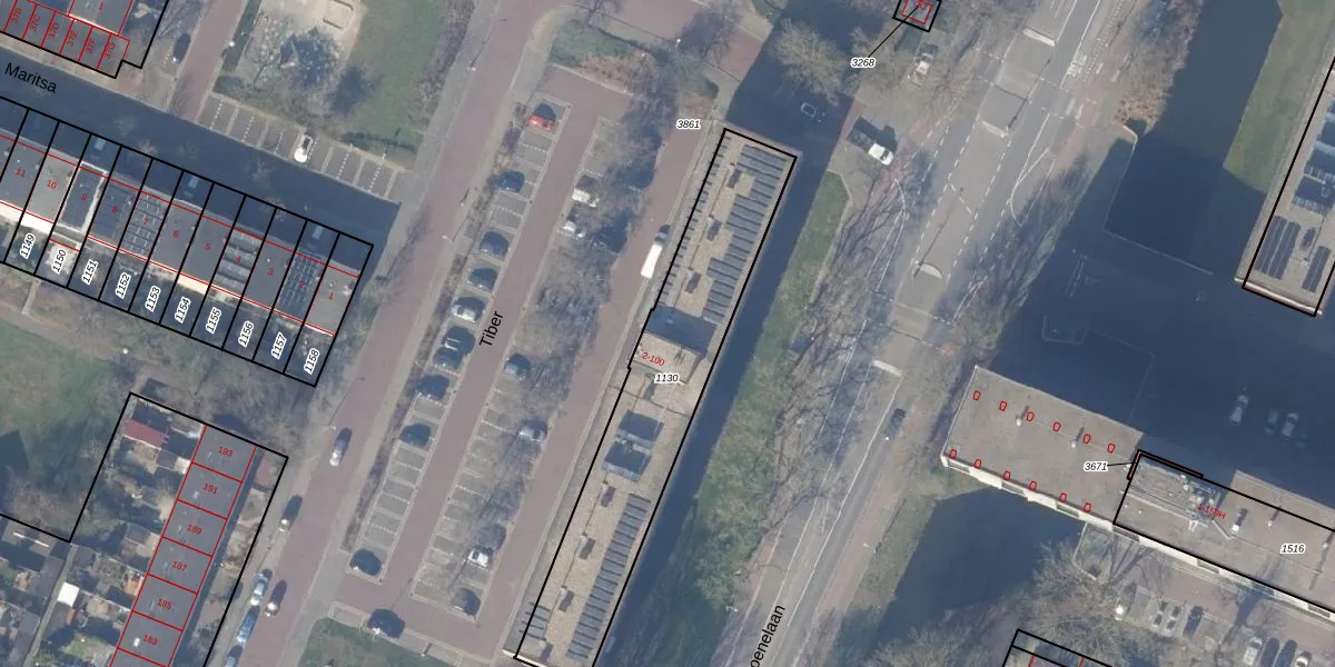 Het perceel waarop Tiber 56 staat heeft een oppervlakte van 970 m². Dit is een groot perceel. De perceeloppervlakte wordt geregistreerd door het Kadaster. Gedetailleerde informatie over de maten van dit perceel kunt u vinden in het rapport Kadastrale kaart met maatvoering van Tiber 56.
