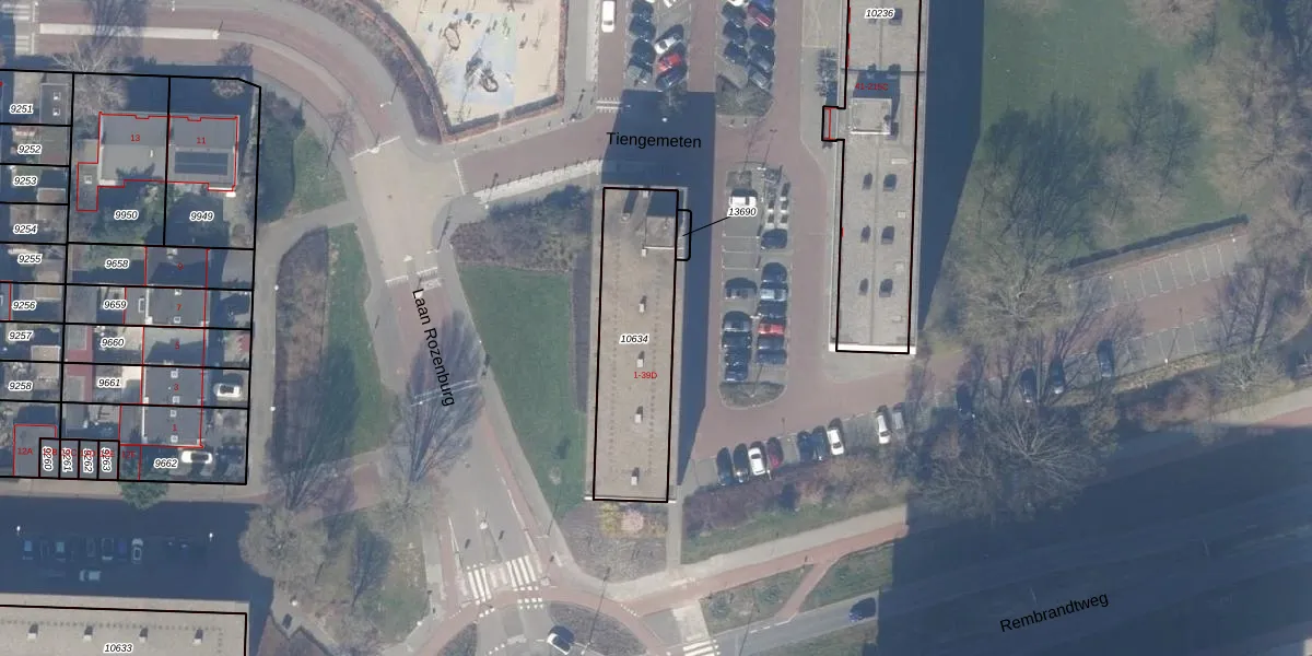 Tiengemeten 39-D is gelegen op kadastraal perceel ASV00H10634. Deze kadastrale aanduiding is uniek en wordt gebruikt door het Kadaster om eigendomsrechten en andere zakelijke rechten vast te leggen. Het perceel maakt onderdeel uit van de kadastrale gemeente Amstelveen.