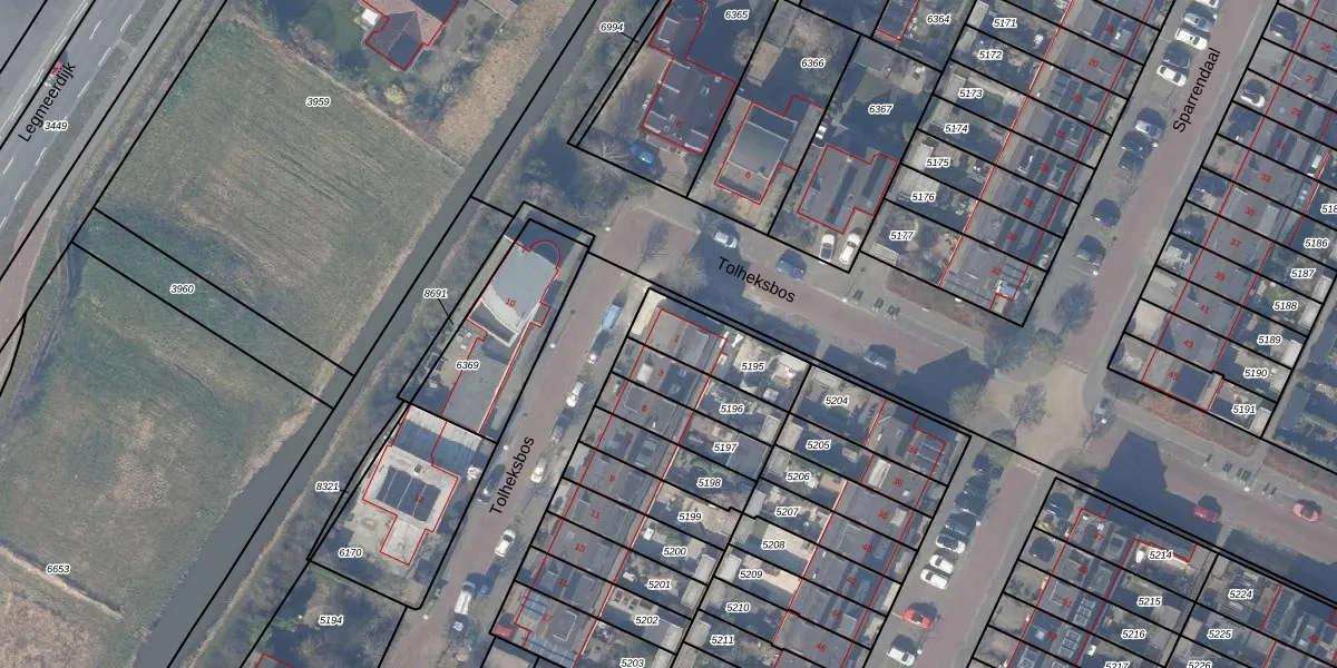 Tolheksbos 1 is gelegen op kadastraal perceel ASV00O5195. Deze kadastrale aanduiding is uniek en wordt gebruikt door het Kadaster om eigendomsrechten en andere zakelijke rechten vast te leggen. Het perceel maakt onderdeel uit van de kadastrale gemeente Amstelveen.